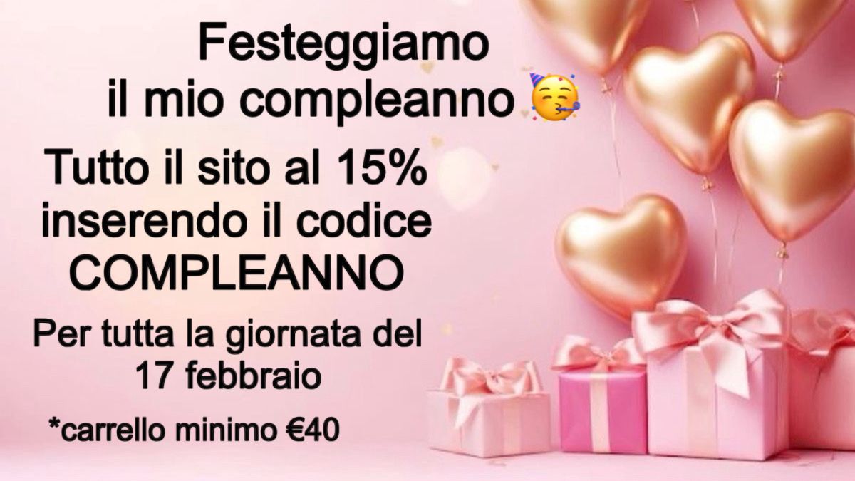 Codice Sconto valido per il primo ordine, scrivi 10 per ottenere il 10% di sconto su tutto il carrello *carrello minimo €30