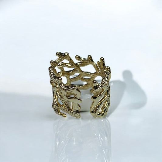 Anello corallo intrecciato in acciaio- misura 18 - fotografia nails